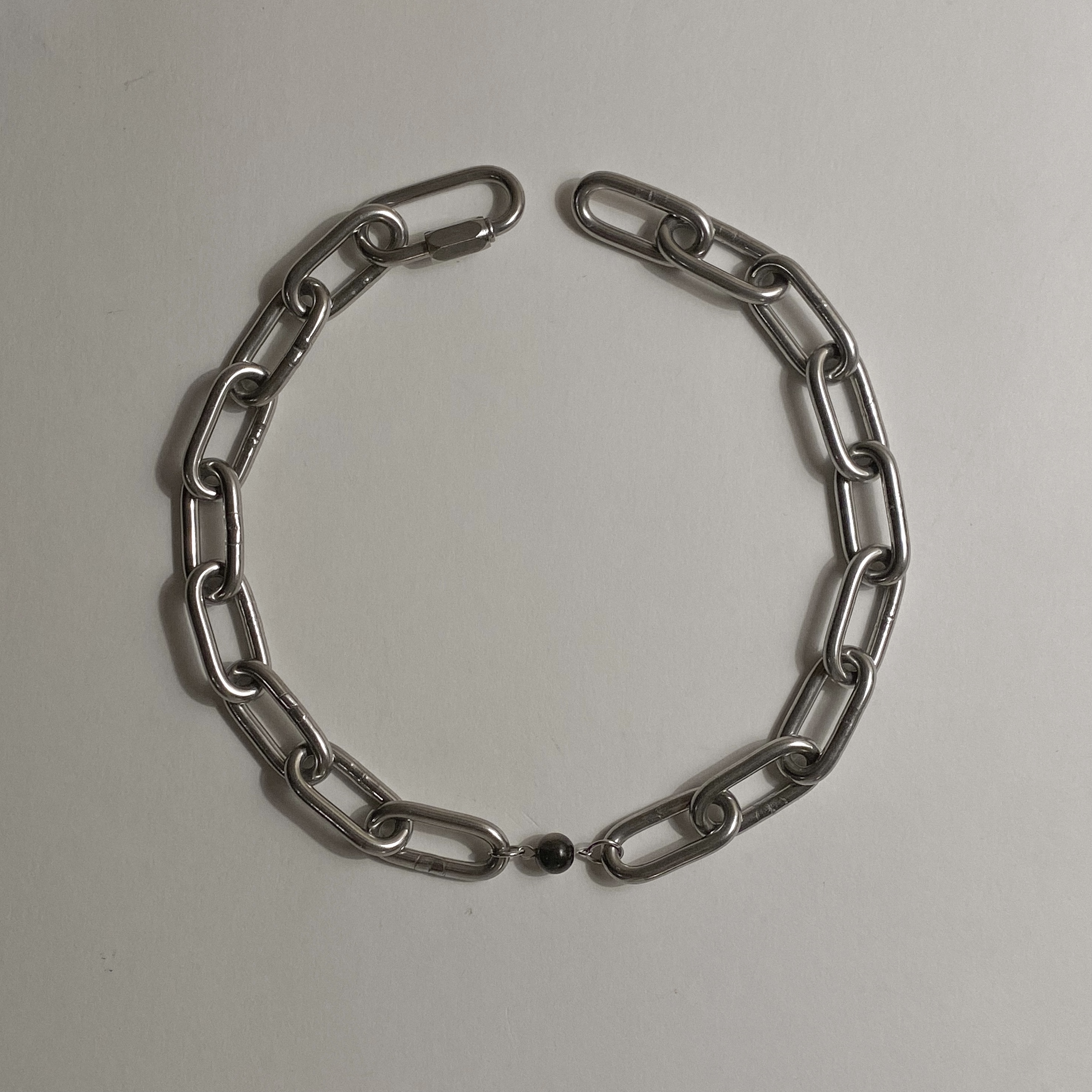 stainless steel chain, black jasper, carabiner linkmodel wearing 16in