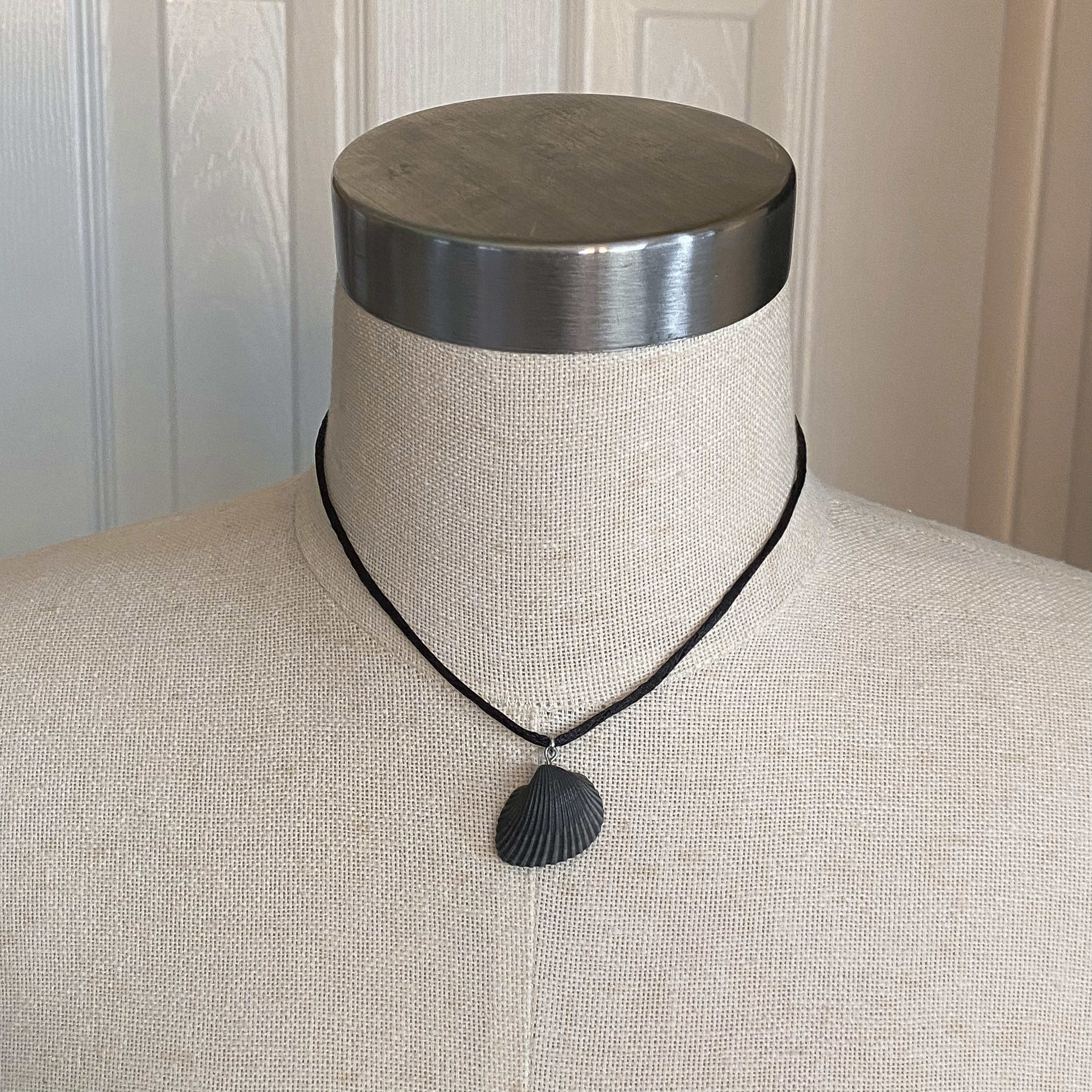 ash black seashell, hematite pendant, 60in silky nylon cord necklaceversatile style